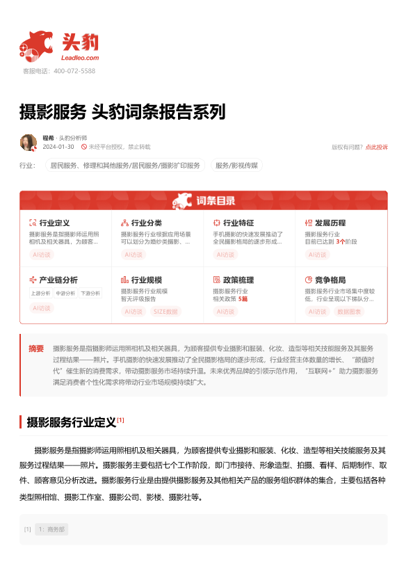 【头豹研究院】【20240130】摄影服务 头豹词条报告系列-14页