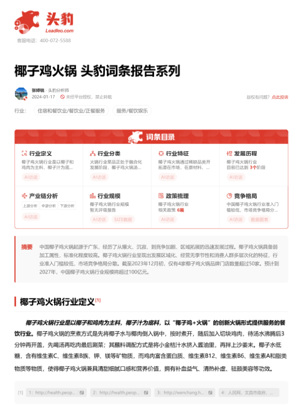 【头豹研究院】【20240117】椰子鸡火锅头豹词条报告系列-14页