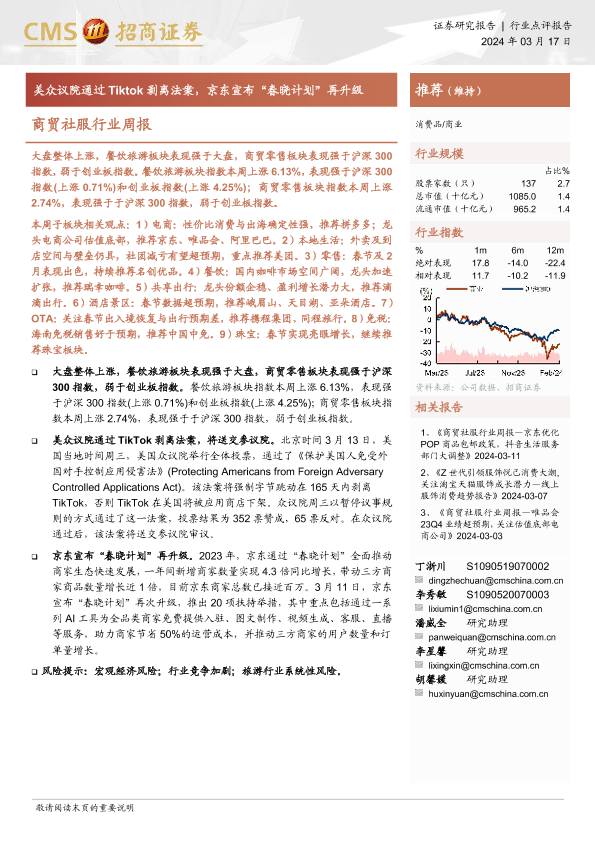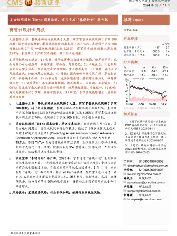 【海通证券】【20240317】商贸社服行业周报:美众议院通过Tiktok剥离法案,京东宣布“春晓计划”再升级-11页