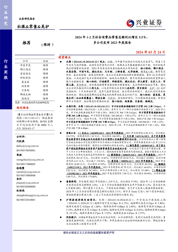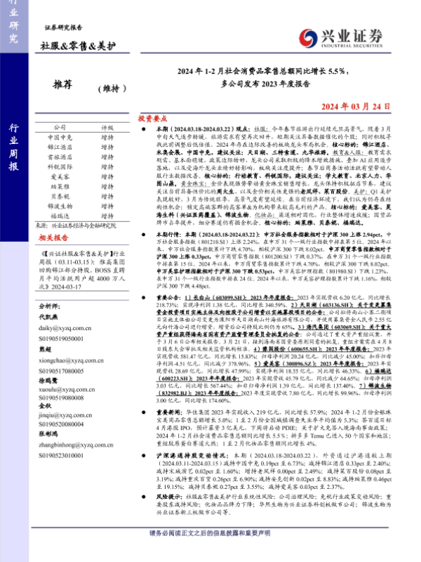 【兴业证券】【20240324】2024年1-2月社会消费品零售总额同比增长5.5%,多公司发布2023年度报告-16页