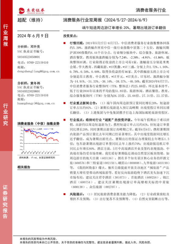 【东莞证券】【20240609】消费者服务行业双周报:端午短途周边游订单增长20%,暑期出境游订单翻倍-10页