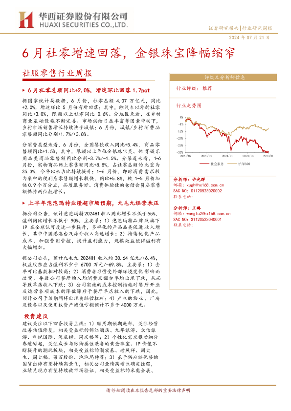 【华西证券】【20240721】6月社零增速回落,金银珠宝降幅缩窄-12页