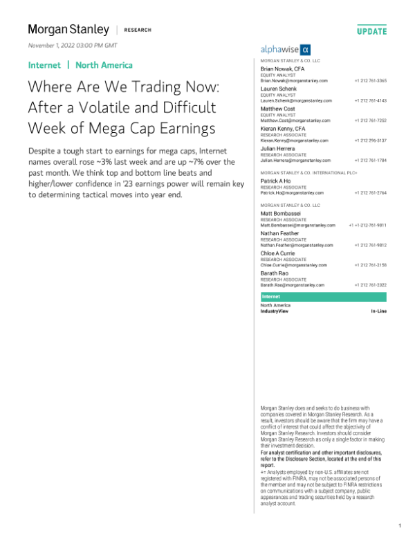 【Morgan Stanley】【20221101】Internet Where Are We Trading Now After a Volatile and Difficult Week of Mega Cap Earnings-12页