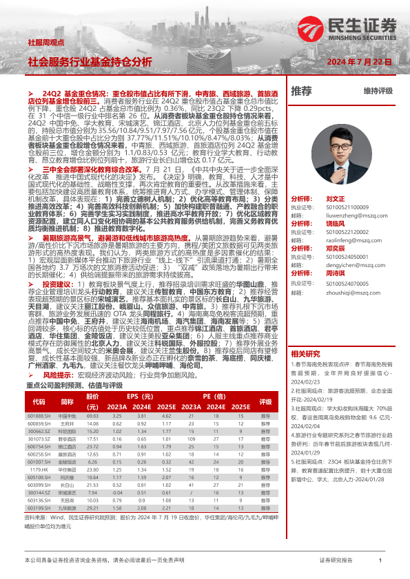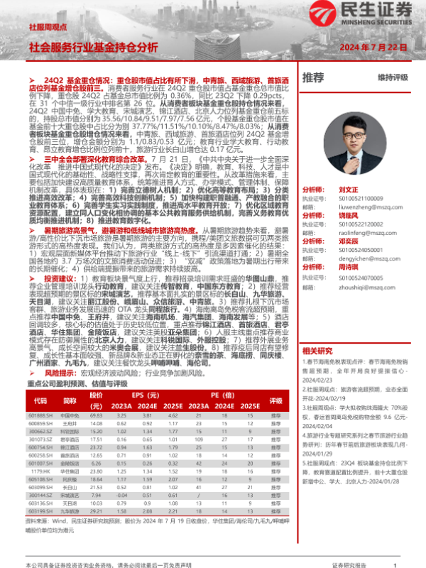 【民生证券】【20240722】社服周观点:社会服务行业基金持仓分析-24页