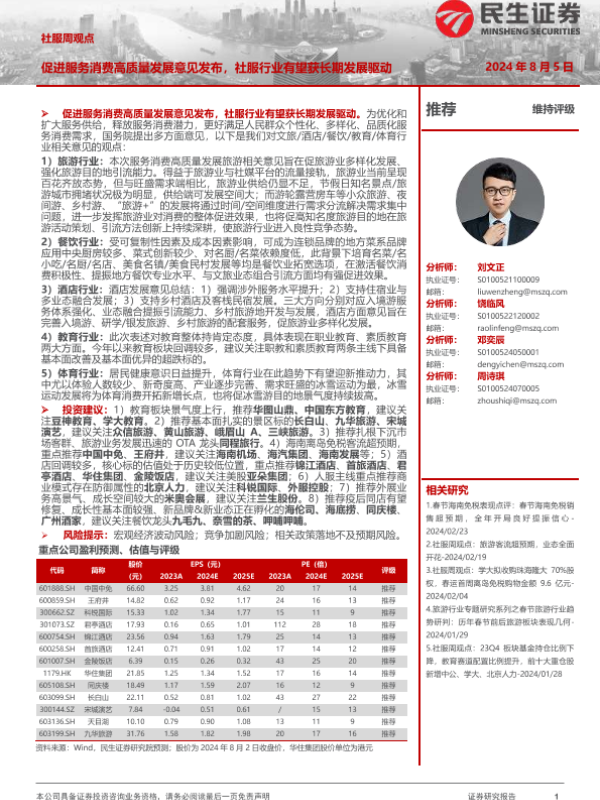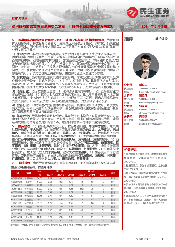 【民生证券】【20240805】社服周观点:促进服务消费高质量发展意见发布,社服行业有望获长期发展驱动-23页