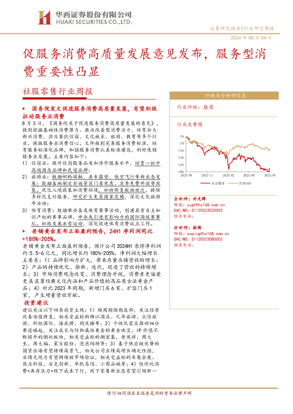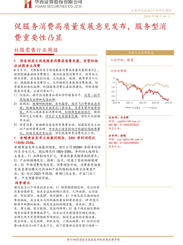 【华西证券】【20240804】社服零售行业周报:促服务消费高质量发展意见发布,服务型消费重要性凸显-14页