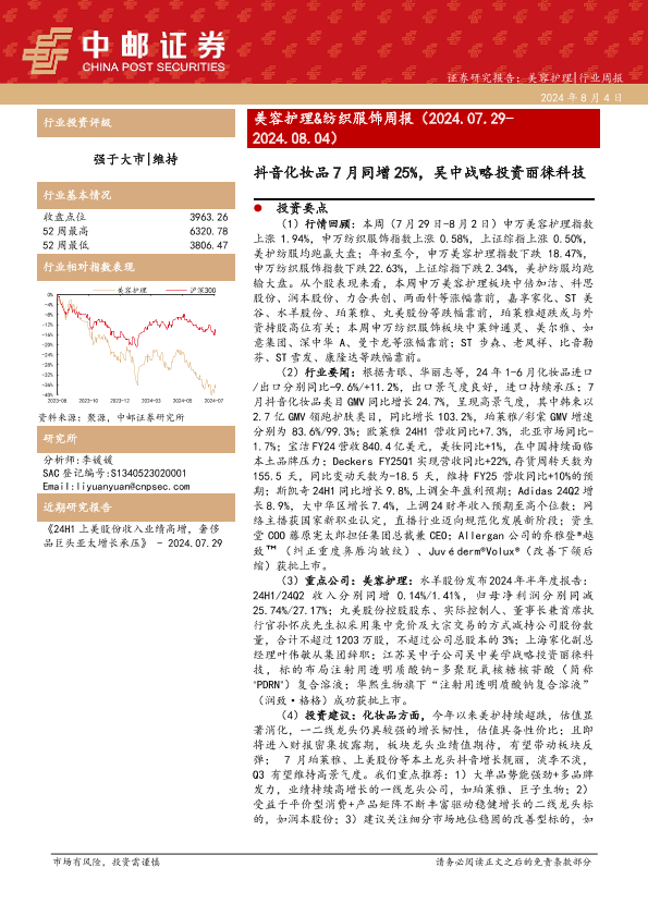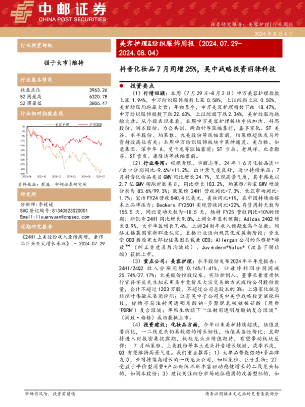 【中邮证券】【20240804】美容护理&纺织服饰周报:抖音化妆品7月同增25%-14页