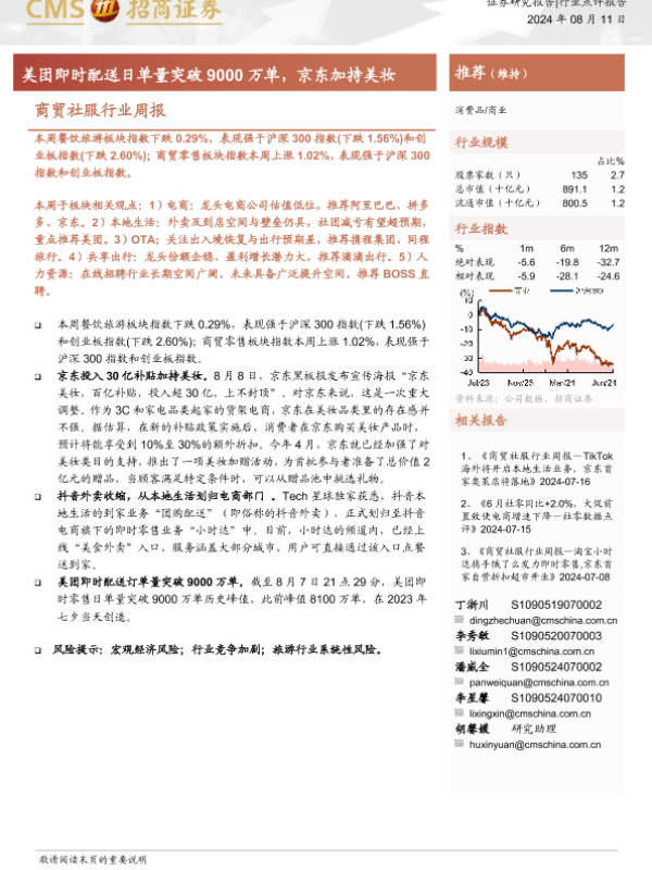 【海通证券】【20240811】商贸社服行业周报:美团即时配送日单量突破9000万单,京东加持美妆-10页