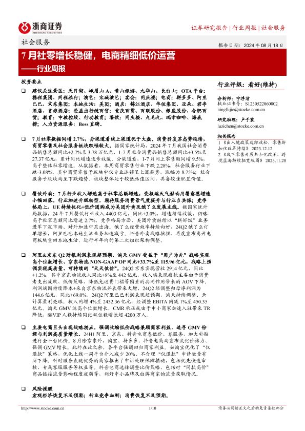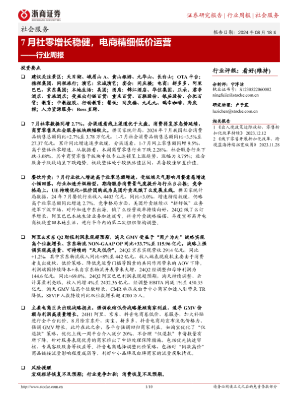 【浙商证券】【20240818】7月社零增长稳健,电商精细低价运营-10页