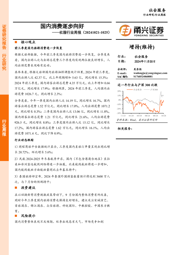 【甬兴证券】【20241105】社服行业周报:国内消费逐步向好-10页