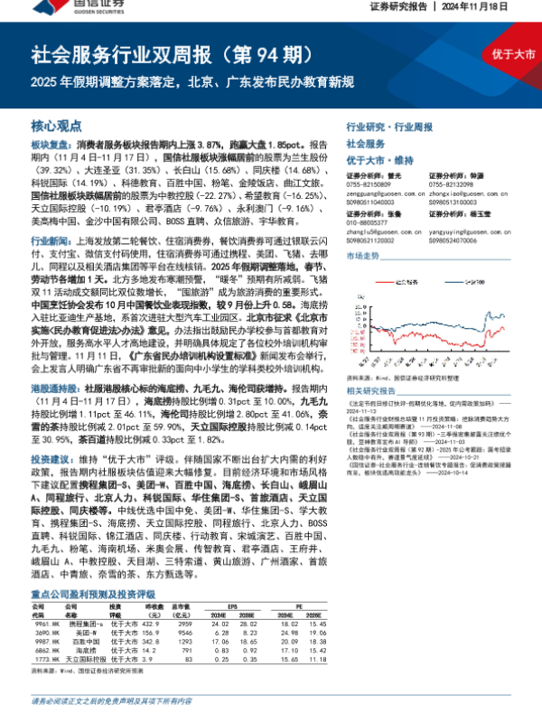 【国信证券】【20241118】社会服务行业双周报(第94期):2025年假期调整方案落定,北京、广东发布民办教育新规-10页