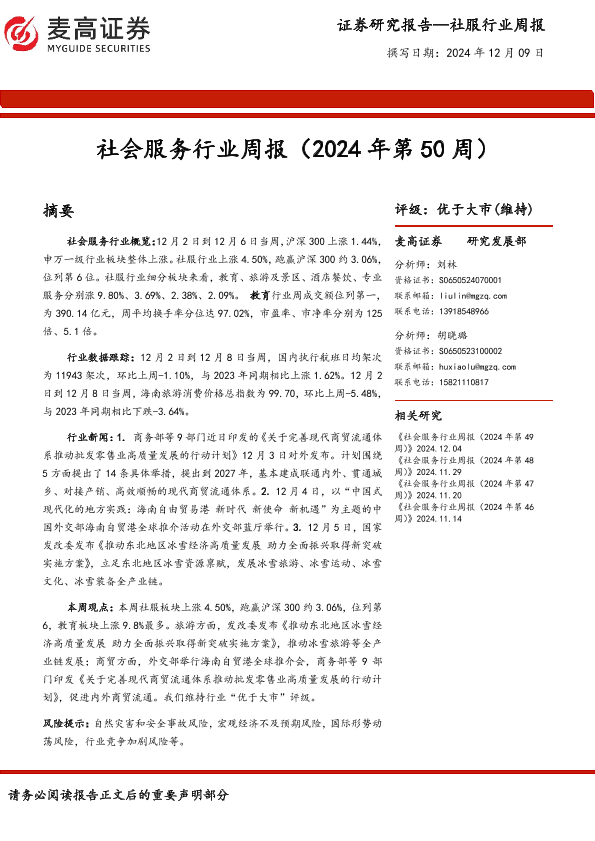 【麦高证券】【20241209】社会服务行业周报-10页