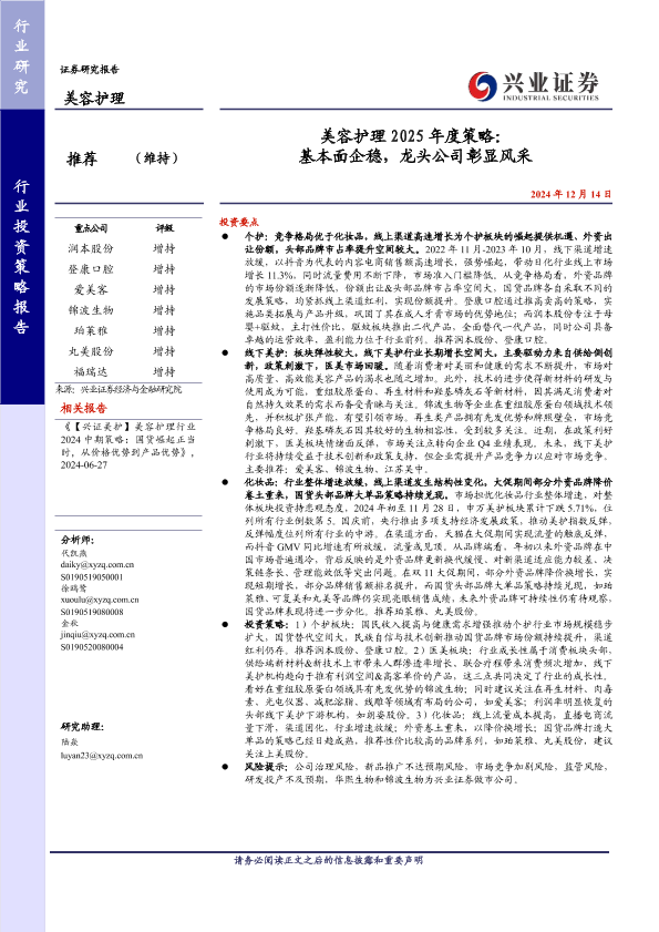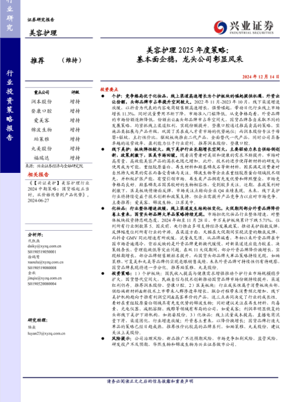 【兴业证券】【20241214】美容护理2025年度策略:基本面企稳,龙头公司彰显风采-36页