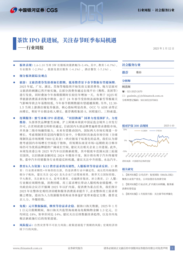 【银河证券】【20250102】社会服务行业周报:茶饮IPO获进展,关注春节旺季布局机遇-16页