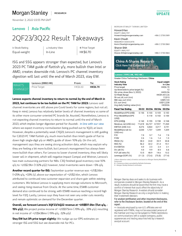 【Morgan Stanley】【20221103】联想2023财年第二季度及2022财年第三季度业绩要点-15页