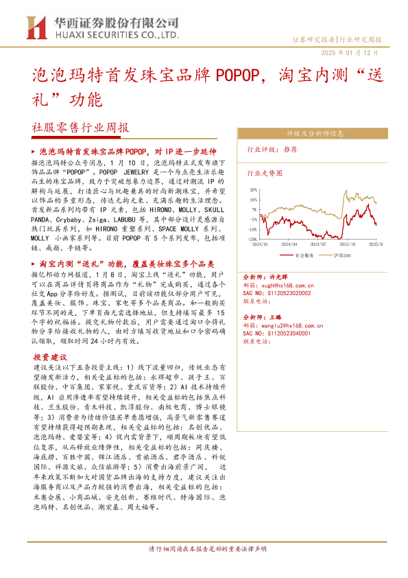 【华西证券】【20250112】社服零售行业周报:泡泡玛特首发珠宝品牌POPOP,淘宝内测“送礼”功能-12页