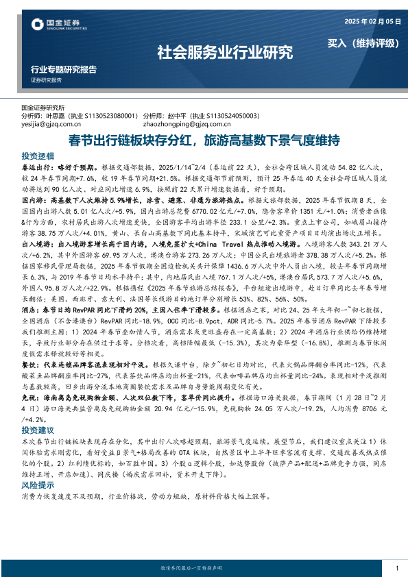 【国金证券】【20250205】社会服务业行业研究:春节出行链板块存分红,旅游高基数下景气度维持-17页