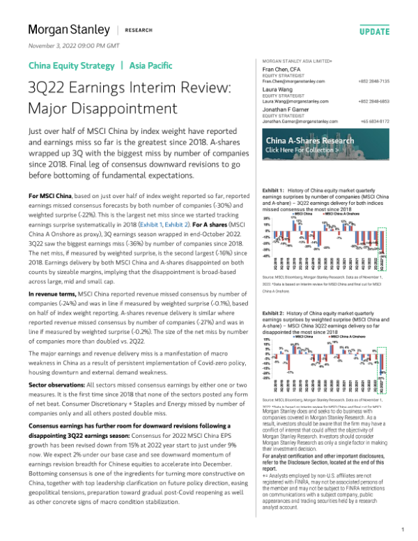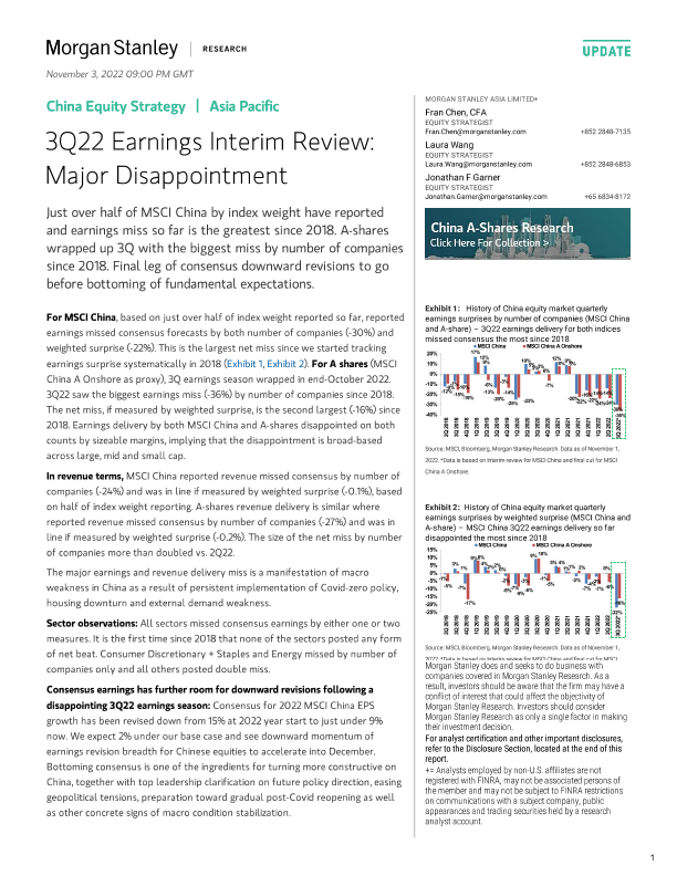 【Morgan Stanley】【20221103】China Equity Strategy 3Q22 Earnings Interim Review Major Disappointment-23页