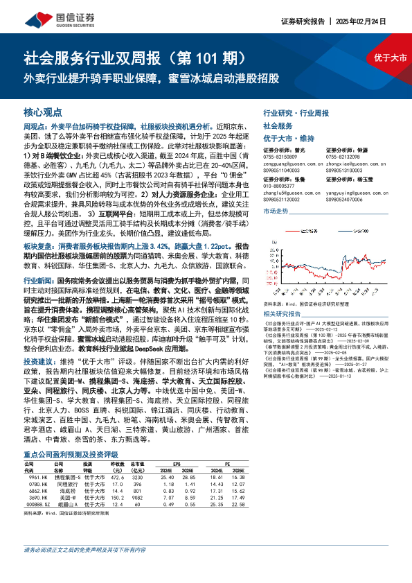 【国信证券】【20250224】社会服务行业双周报(第101期):外卖行业提升骑手职业保障,蜜雪冰城启动港股招股-11页