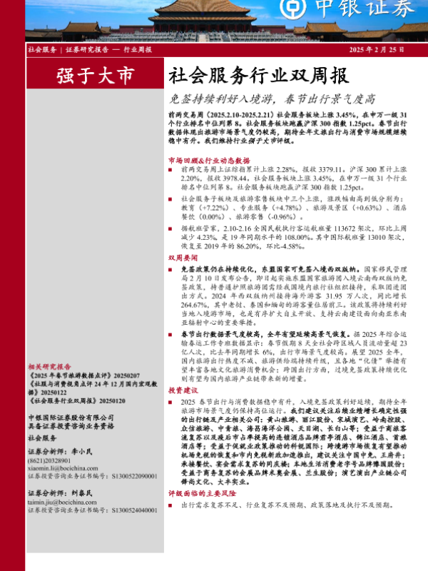 【中银证券】【20250225】社会服务行业双周报:免签持续利好入境游,春节出行景气度高-16页