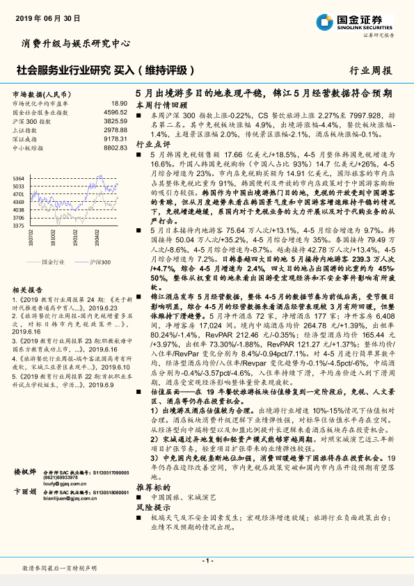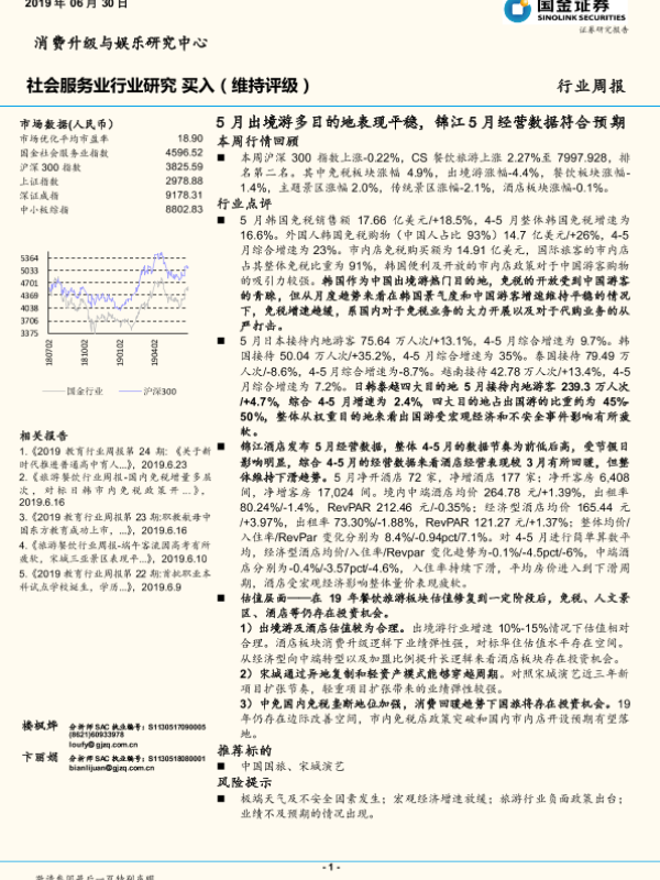【国金证券】【20190630】社会服务业行业周报:5月出境游多目的地表现平稳,锦江5月经营数据符合预期-10页