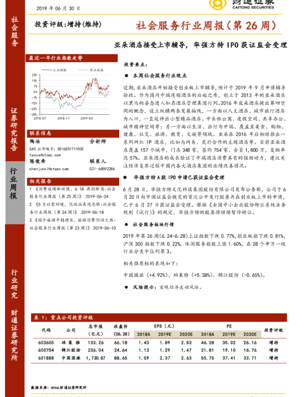 【财通证券】【20190630】社会服务行业周报(第26周):亚朵酒店接受上市辅导,华强方特IPO获证监会受理-11页
