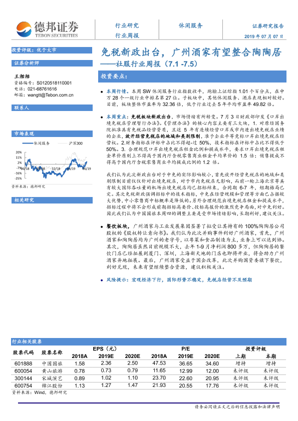 【德邦证券】【20190707】社服行业周报:免税新政出台,广州酒家有望整合陶陶居-8页