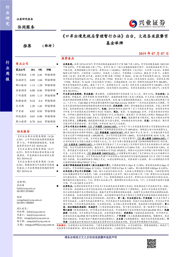 【兴业证券】【20190707】口岸出境免税店管理暂行办法出台,大连圣亚获磐京基金举牌-14页