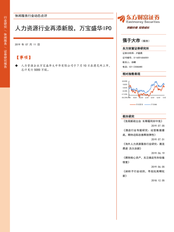 【东方财富证券】【20190711】休闲服务行业动态点评:人力资源行业再添新股,万宝盛华IPO-3页