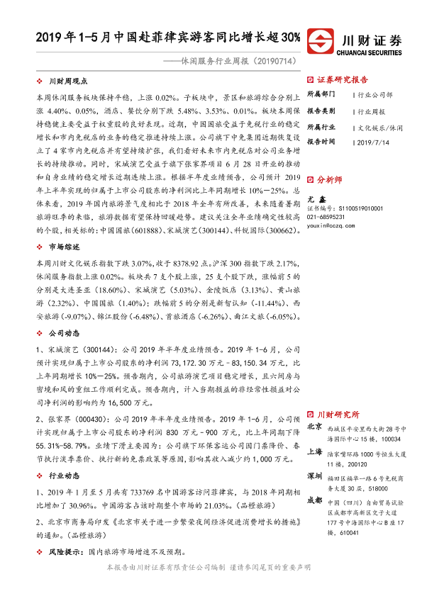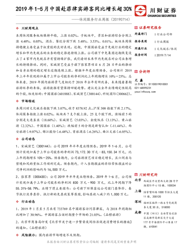 【川财证券】【20190714】2019年1-5月中国赴菲律宾游客同比增长超30%-9页