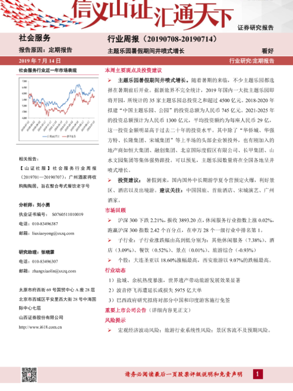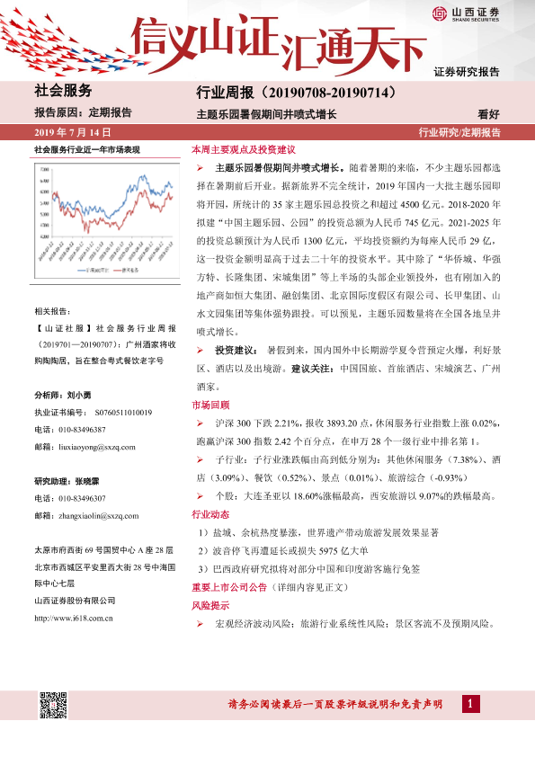 【山西证券】【20190714】社会服务行业周报:主题乐园暑假期间井喷式增长-9页