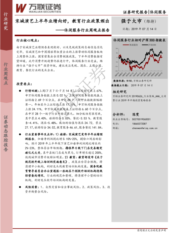 【万联证券】【20190714】休闲服务行业周观点报告:宋城演艺上半年业绩向好,教育行业政策频出-9页