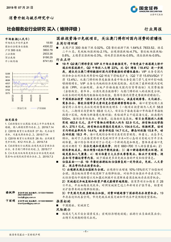 【国金证券】【20190721】社会服务业行业周报:国旅投资海口免税项目,关注澳门博彩对国内消费的前瞻性-11页