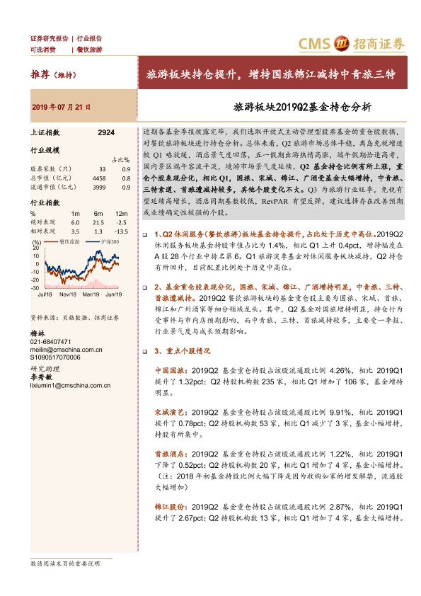 【海通证券】【20190721】旅游板块2019Q2基金持仓分析-5页