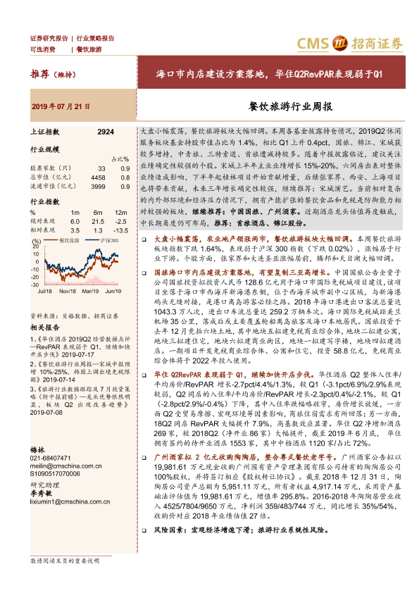 【海通证券】【20190721】餐饮旅游行业周报:海口市内店建设方案落地,华住Q2RevPAR表现弱于Q1-8页