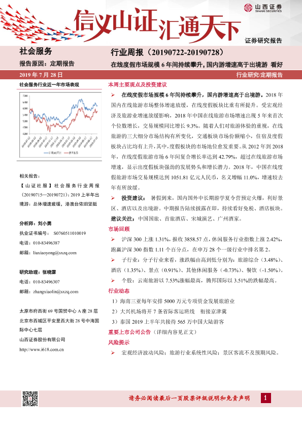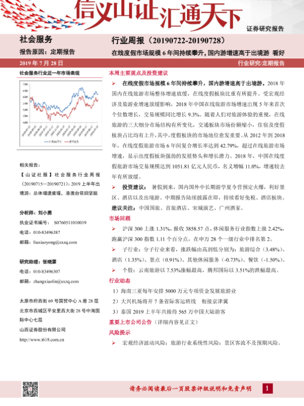 【山西证券】【20190728】社会服务行业周报:在线度假市场规模6年间持续攀升,国内游增速高于出境游-10页