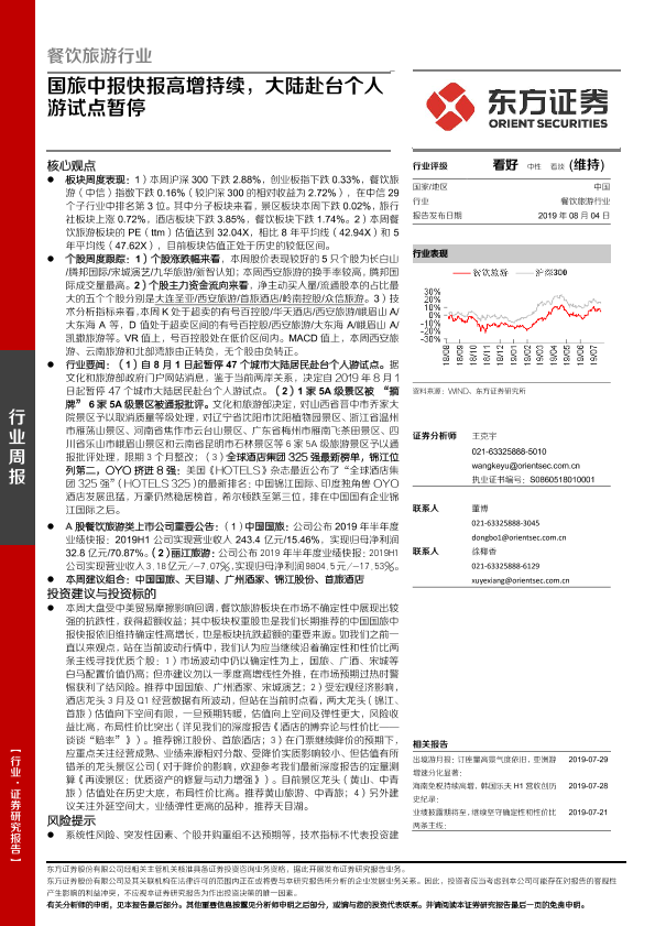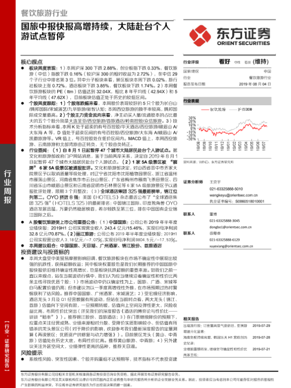 【东方证券】【20190804】餐饮旅游行业周报:国旅中报快报高增持续,大陆赴台个人游试点暂停-22页