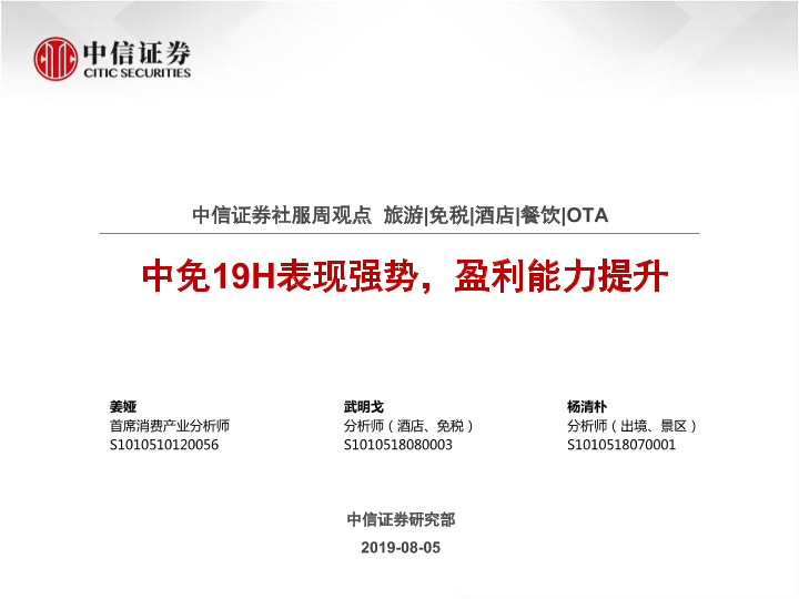 【中信证券】【20190805】社服周观点:中免19H表现强势,盈利能力提升-11页