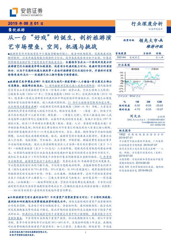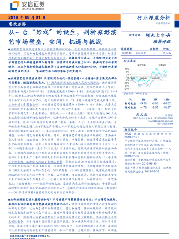 【安信证券】【20190801】从一台“好戏”的诞生,剖析旅游演艺市场壁垒,空间,机遇与挑战-23页