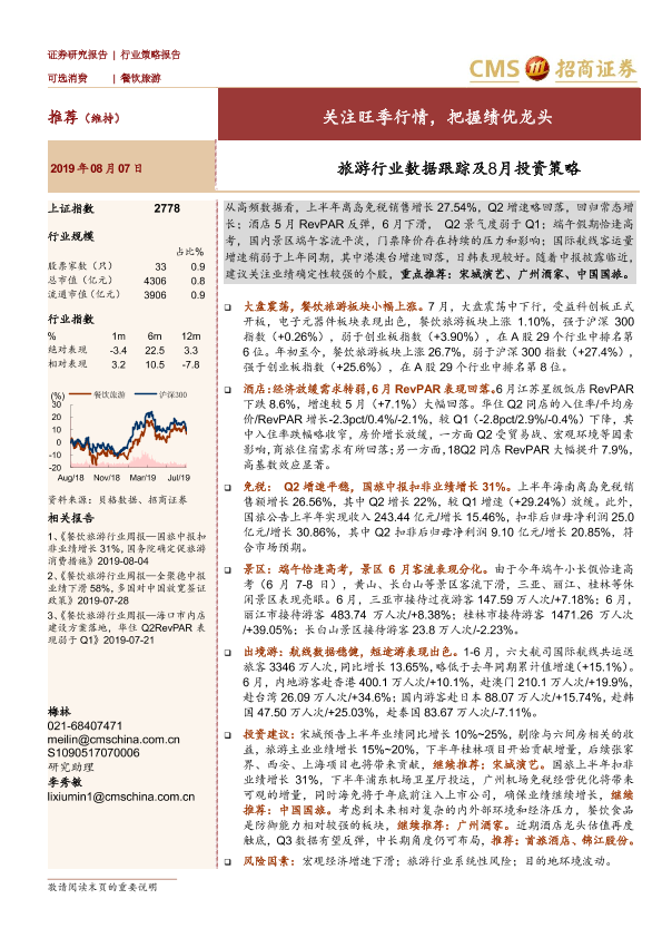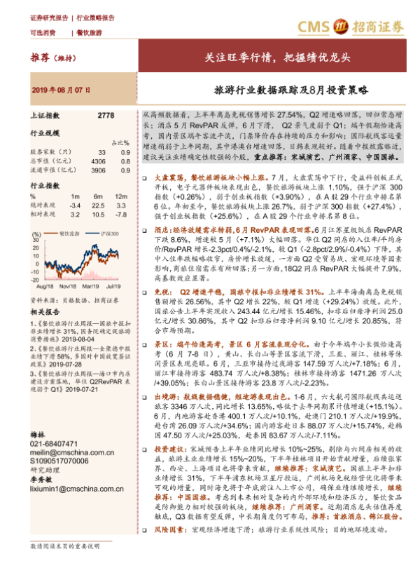 【海通证券】【20190807】旅游行业数据跟踪及8月投资策略-21页