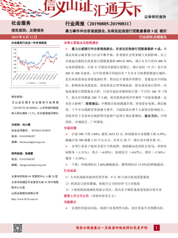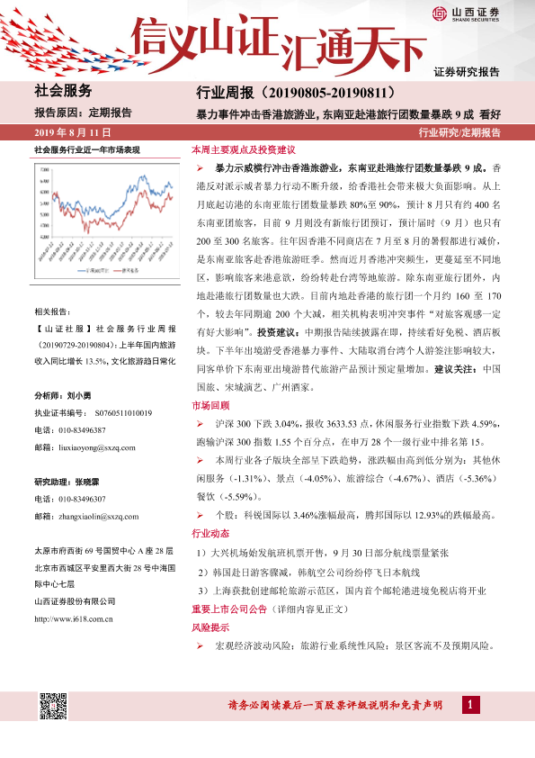 【山西证券】【20190811】社会服务行业周报:东南亚赴港旅行团数量暴跌9成-9页