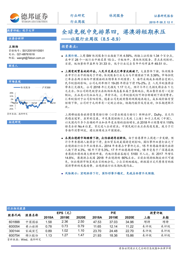 【德邦证券】【20190812】社服行业周报:全球免税中免排第四,港澳游短期承压-8页