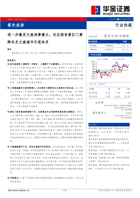 【华金证券】【20190825】进一步激发文旅消费潜力,关注国有景区门票降价及文旅城市示范体系-3页