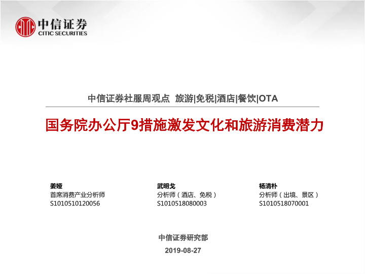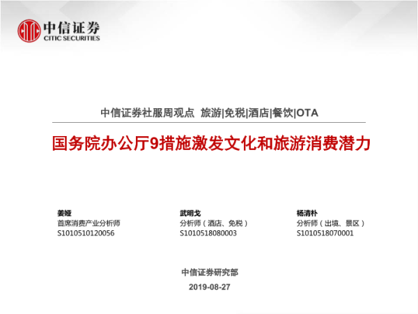【中信证券】【20190827】社服周观点:国务院办公厅9措施激发文化和旅游消费潜力-10页