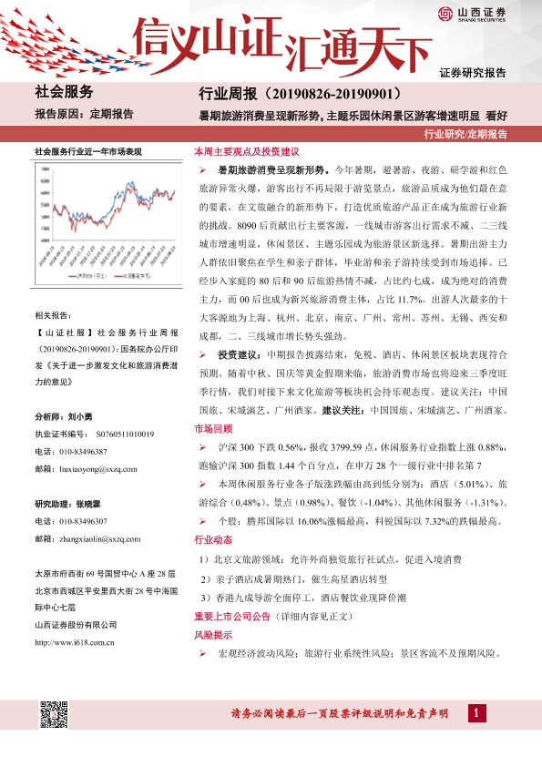 【山西证券】【20190902】社会服务行业周报:暑期旅游消费呈现新形势,主题乐园休闲景区游客增速明显-9页