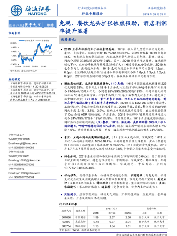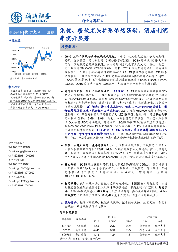 【海通证券】【20190903】旅游服务业行业专题报告:免税、餐饮龙头扩张依然强劲,酒店利润率提升显著-20页