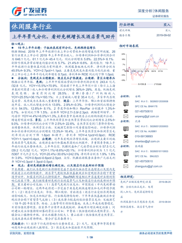 【广发证券】【20190902】休闲服务行业深度分析:上半年景气分化,看好免税增长及酒店景气回升-39页