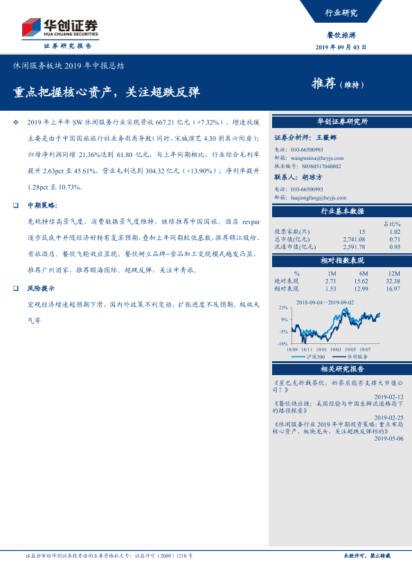 【华创证券】【20190903】休闲服务板块2019年中报总结:重点把握核心资产,关注超跌反弹-26页