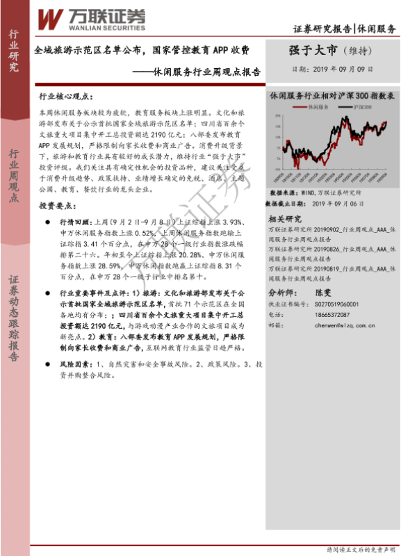 【万联证券】【20190909】休闲服务行业周观点报告:全域旅游示范区名单公布,国家管控教育APP收费-9页