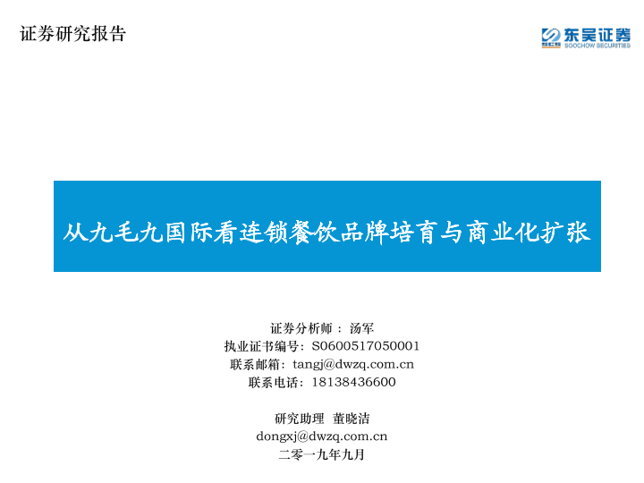 【东吴证券】【201909】从九毛九国际看连锁餐饮品牌培育与商业化扩张-57页